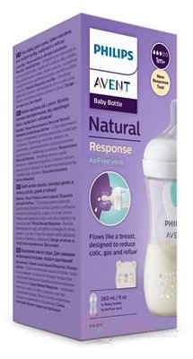 - Umožňuje pokojné a pohodlné kŕmenie. Cumlík Natural Response podporuje prirodzený rytmus satia, prehĺtania a dýchania dieťaťa a ventil AirFree je navrhnutý tak, aby odvádzal vzduch z fľaše na ochranu pred kolikou, plynatosťou a refluxom.