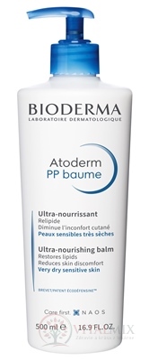 Atoderm PP baume je intenzívny výživný balzam, ktorý zabraňuje závažnej suchosti pokožky charakterizovanú hrubou, šupinatou a napnutou pokožkou. Vitamín PP a výživné zložky biologicky regenerujú a posilňujú narušenú kožnú bariéru tým, že dodávajú nevyhnutné lipidy a podnecujú ich k ich tvorbe. Jeho bohatá krémová, vysoko upokojujúci textúra sa okamžite vstrebáva. Vynikajúca znášanlivosť. Určené na tvár a telo.