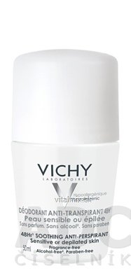 Vichy Dezodorant Antiperspirant roll-on pre citlivú alebo depilovanú pokožku prináša cielený účinok proti vlhkosti a pachu