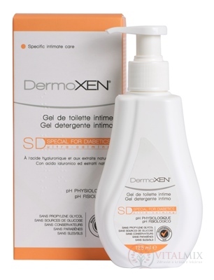 DermoXen SD upokojujúci Intímny čistiaci gél pomáha riešiť špecifické gynekologické problémy diabetičiek. Chráni proti baktériám. Zvyšuje komfort a dlhodobo hydratuje. Bez glukózy, parfumov, parabénov, surfaktantov a ťažkých kovov.