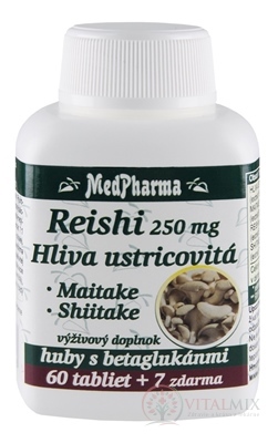 Výživový doplnok s extraktami z húb. Celkový obsah betaglukánov - min. 126 mg v dennej dávke (2 tablety).