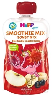 HiPP BIO Smoothie Jablko Banán Červené ovocie kapsička (od 1. roku) ovocný príkrm 1x120 ml