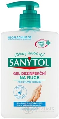 Sanytol gél dezinfekčný čistí ruky, neutralizuje zápach a eliminuje 99,9%* baktérií, vírusov a plesní bez vody a mydla. Jeho hydratačné a upokojujúce zloženie s alantoínom a aloe vera je špeciálne určené pre citlivú pleť.