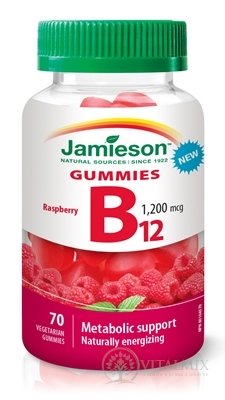 Výživový doplnok. Vitamín B12 v želatínových pastilkách s prírodnou malinovou príchuťou.