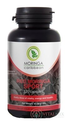 RED MORINGA SPORT obsahuje 120 kapsúl nabitých tými najúčinnejšími látkami prírodnej povahy, podporujúcimi vitalitu, energiu a športový výkon muža. Každá kapsula pozostáva z prášku z listov Moringy pestovanej na našich plantážach v Karibiku v kontrolovanej kvalite a z extraktu koreňa rastliny Tribulus terrestris s obsahom saponínov nad 90%.