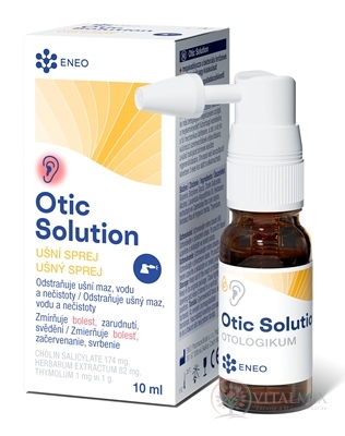 Zdravotnícka pomôcka. Ušný sprej je vhodný na odstránenie mazu, vody a nečistôt z vonkajšieho zvukovodu, na zmiernenie ťažkostí (bolesť, začervenanie, svrbenie) vonkajšieho zvukovodu a na prevenciu ochorení vonkajšieho zvukovodu.