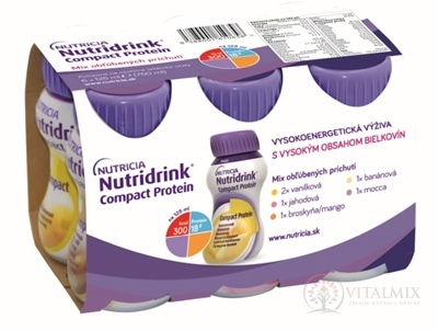 Potravina na osobitné lekárske účely. Na diétny režim pri podvýžive súvisiacej s ochorením. Nutridrink Compact Protein je vysokoenergetická tekutá výživa s vysokým obsahom bielkovín.