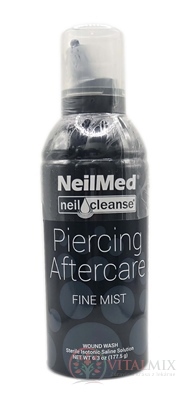Špičková prírodná, vegánska a sterilná starostlivosť o piercing vo fyziologickom roztoku bez konzervačných látok na ošetrenie drobných poranení a piercingu.NeilMed Piercing Aftercare umožňuje používateľom nastriekať fyziologický roztok priamo na piercing namiesto namáčania piercingu do soľného kúpeľa alebo používania vatového