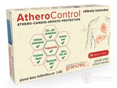 AtheroControl obsahuje zloženie prispievajúce k zníženiu cholesterolu (monakolin K, polikosanol), k normálnej funkcii pečene (silymarín), k normálnej hladine glykémie (chróm), k normálnemu metabolizmu homocysteínu (kyselina listová). Naviac obsahuje mikronizovaný palmitoyletanolamid (PEA), ktorá ovplyvňuje funkciu cievnej výstelky a stabilitu aterosklerotického plátu v stenách tepien.