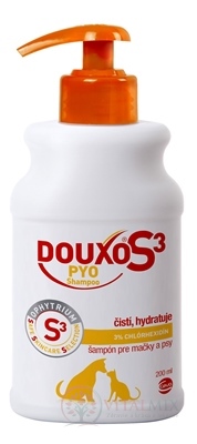 Šampón pre mačky a psy, čistí a hydratuje. Dezinfekčný prípravok. Na použitie odborníkmi, ako aj širokou verejnosťou. Číra slabožltá viskózna kvapalina, obsahuje 3 % chlórhexidín.
