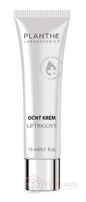 Kozmetický prípravok PLANTHÉ Očný krém LIFTINGOVÝ prispieva k omladnutiu a zlepšeniu vzhľadu očného okolia. Obsahuje olej zo semien Inca Inchi, ktorý má jeden z najvyšších obsahov esenciálnych Omega-3 mastných kyselín medzi rastlinnými olejmi. Stimuluje vyhladenie, pružnosť a vypnutie očných viečok a zároveň zaisťuje intenzívny lifting. Obsiahnutý makadamiový olej upokojuje, vyživuje a regeneruje pokožku, čím prispieva k vyhladeniu unavenej pokožky v okolí očí a obmedzuje vznik kruhov pod očami. Olej z bavlníkových semien, bohatý na antioxidanty, regeneruje a vyživuje pokožku, čím pôsobí proti starnutiu pleti a zmierňuje kruhy pod očami. Obsiahnutá kyselina hyalurónová hydratuje, vypína a vyplňuje vrásky, čím je pleť po aplikácii viditeľne mladšia a žiarivejšia.