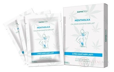 Cannaderm Mentolka chladivá konopná náplasť prináša rýchlu a dlhotrvajúcu úľavu pri natiahnutí svalov, stuhnutosti chrbta a kĺbov, únave a preťažení pohybového aparátu. Náplasť s obsahom konopného oleja a mentolu vplyvom chladivého efektu v postihnutých miestach obmedzuje nepríjemné pocity stuhnutosti, únavy a preťaženia a uľavuje pohybovému aparátu. Hydrogélová forma náplasti zaisťuje okamžitý nástup chladivého účinku a ľahkú priľnavosť k pokožke. Zároveň ale umožňuje náplasť jednoducho odstrániť z pokožky bez toho, aby došlo k nepríjemnému podráždeniu kože a trhaniu chĺpkov.