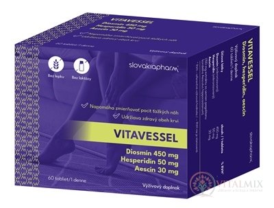 Výživový doplnok s obsahom flavonoidov diosmínu (450 mg) a hesperidínu (50 mg) doplnených o aescín (30 mg) vo forme rastlinného extraktu pagaštanu konského (Aesculus hippocastanum).