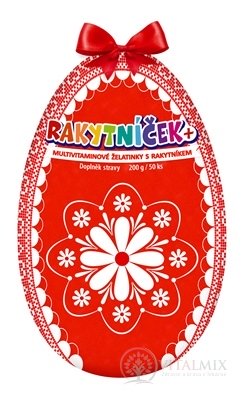 Multivitamínové želatínky Rakytníček+ obsahujú rakytník a zmes ovocných koncentrátov a vitamíny. Obsahuje 20% ovocnej šťavy a 9 vitamínov.
