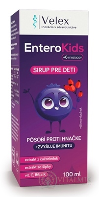 Sirup na prírodnej báze obsahujúci extrakty zo šípok a čučoriedky; vitamíny C, B6 a K.