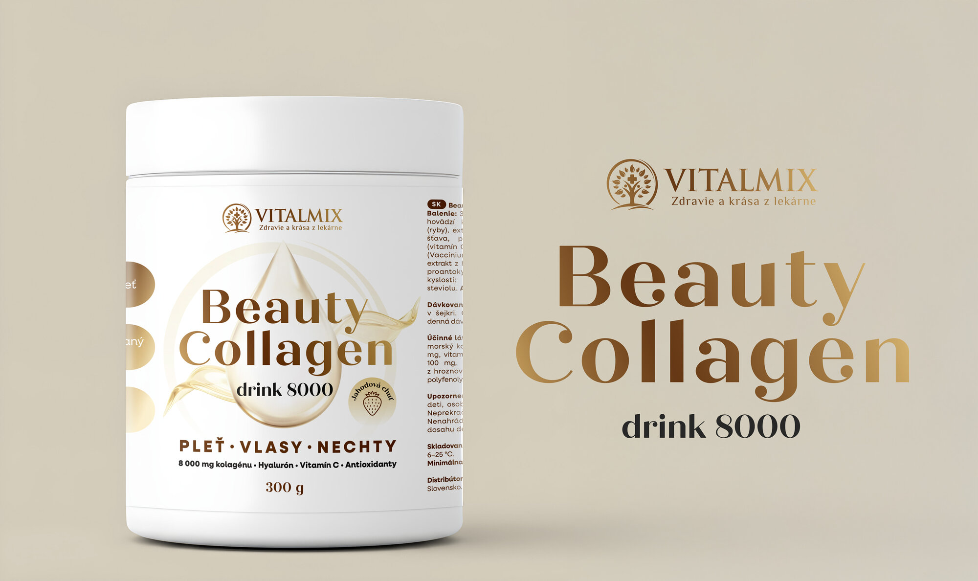 VITALMIX Beauty Collagen Drink 8000 je prémiový výživový doplnok s vysokým obsahom hovädzieho a morského kolagénu, doplnený o vitamín C, kyselinu hyalurónovú a silné rastlinné extrakty.