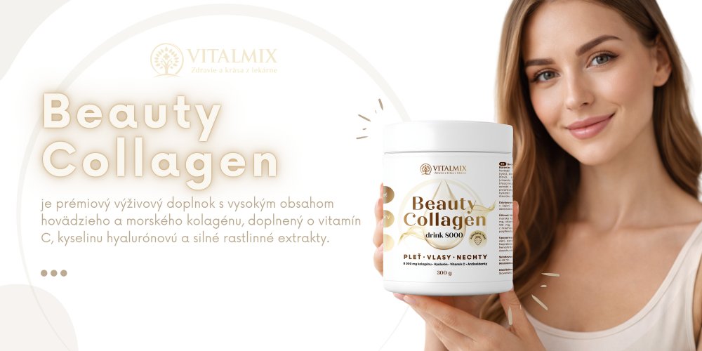 Komplexná beauty podpora pre pleť, vlasy, nechty a kĺby: 3 X VITALMIX Beauty Collagen Drink 8000 je prémiový výživový doplnok s vysokým obsahom hovädzieho a morského kolagénu, doplnený o vitamín C, kyselinu hyalurónovú a silné rastlinné extrakty. Vďaka premyslenej kombinácii účinných látok podporuje elasticitu pokožky, hydratáciu, mladistvý vzhľad aj zdravie pohybového aparátu.