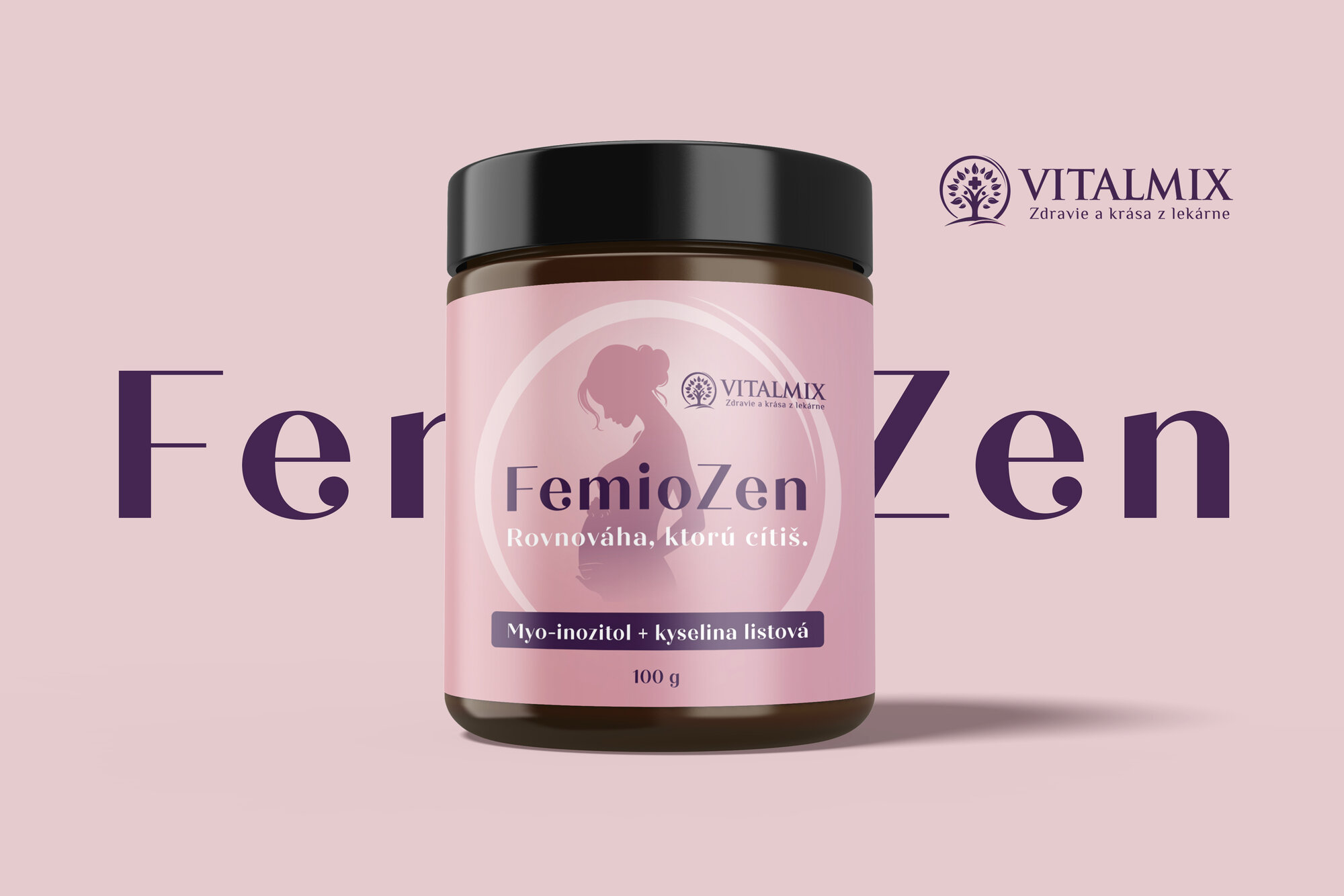 VITALMIX FEMIOZEN 100g výživový doplnok určený pre ženy, ktoré riešia hormonálnu nerovnováhu, nepravidelný cyklus, PCOS alebo plánujú tehotenstvo.