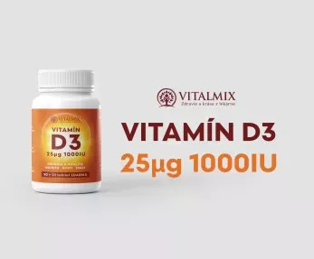 VITAMÍN D3 25 µg (1000 IU) od značky Vitalmix je výživový doplnok určený na podporu imunity, zdravých kostí, svalov a zubov.